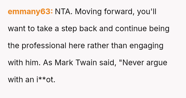 The debate centers on whether confronting exploitative behavior directly via authority is appropriate in a professional setting, or if such matters should be handled solely through p*er-to-p*er boundary setting.