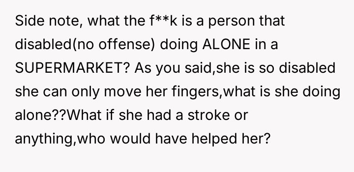Every day, a silent story unfolds in the aisles of the supermarket—a woman bound to her wheelchair, trapped within her own body, her eyes pleading for connection in a world that barely pauses for her.