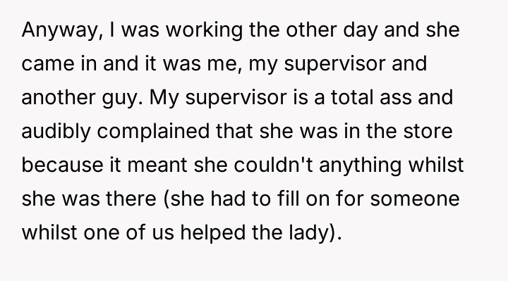 Does the responsibility for a failed transaction lie primarily with the employee who made a reasonable effort to interpret non-verbal cues, or with the system that allows a customer with such profound needs to shop alone without adequate support or pre-es**blished communication protocols?