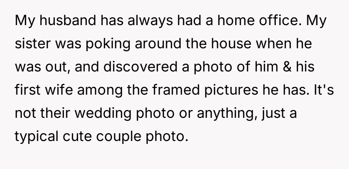 AITA for kicking my sister out over a photo of my husband's first wife?