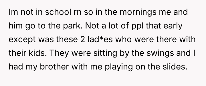 AITA for yelling at these 2 lad*es at the park about my brother?