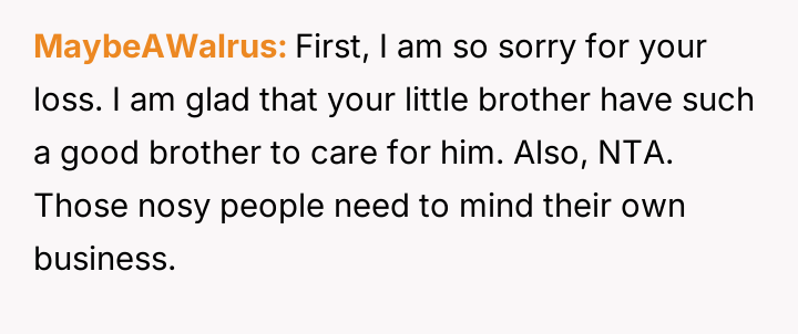 The original poster (OP) is clearly feeling protective and hurt by the public judgment concerning his role as caregiver to his younger brother, especially following his father's recent death.