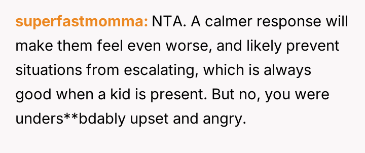 His reaction was driven by anger at the perceived insensitivity and judgmental nature of the comments, leading him to confront the women directly, creating a conflict between his need to defend his family's situation and his mother's view that his aggressive response was unnecessary given the misunderstanding.