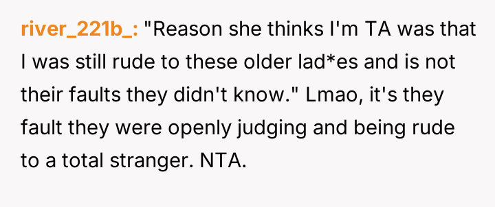 Was the OP justified in his anger and confronting the women for making unso***ited, judgmental comments based on an assumption, or did their immediate apology after learning the truth warrant a more restrained response, given the social expectations for younger individuals interacting with older women?