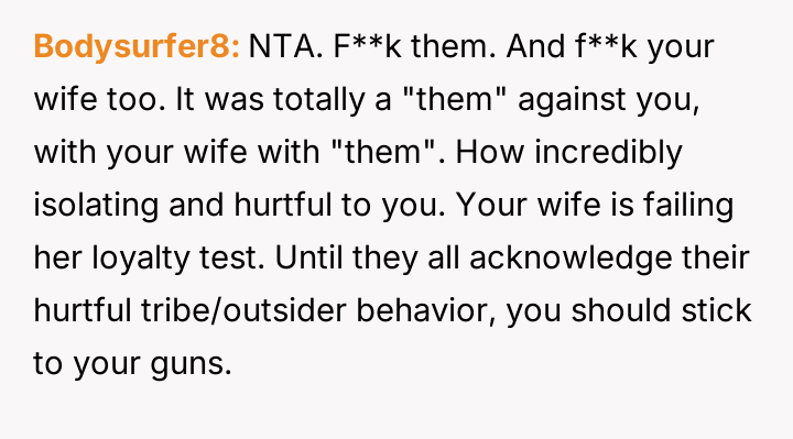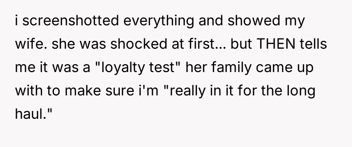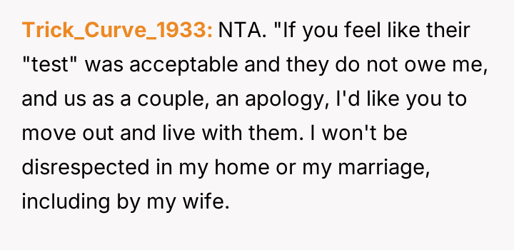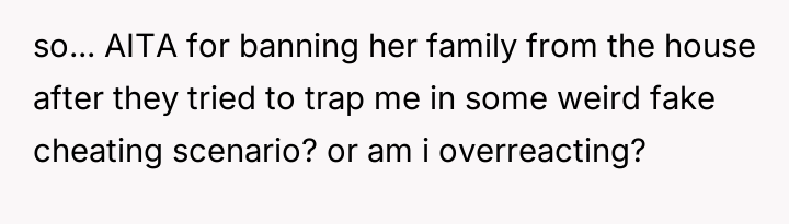 AITA for telling my wife’s family they’re not welcome at our house after they tried to “test” my loyalty?