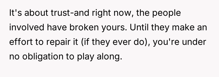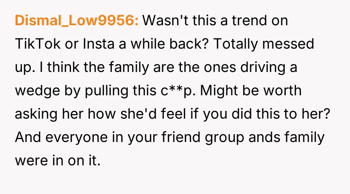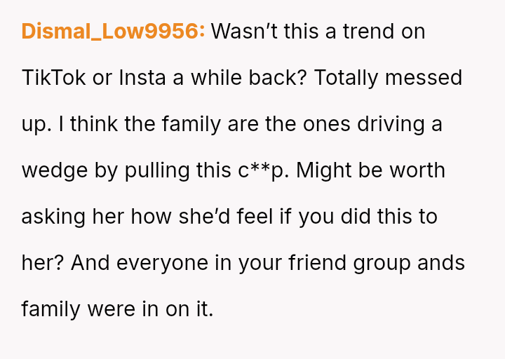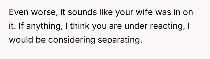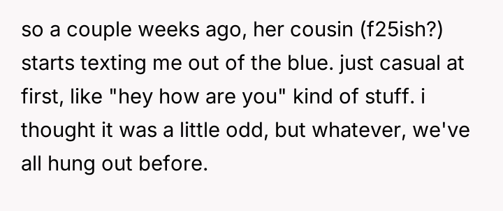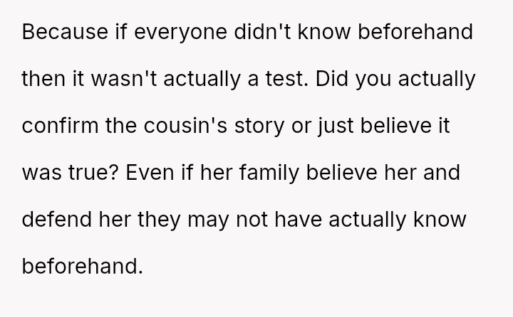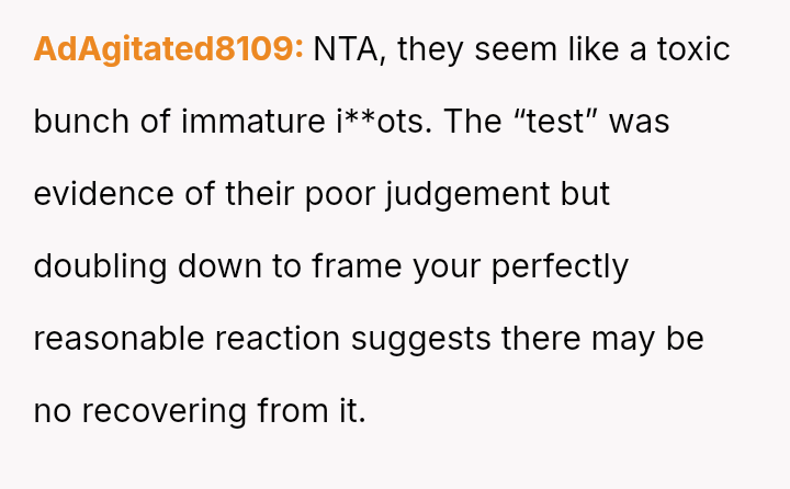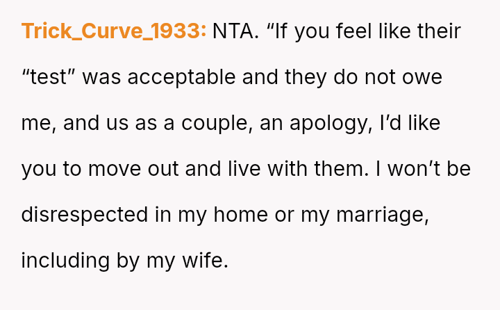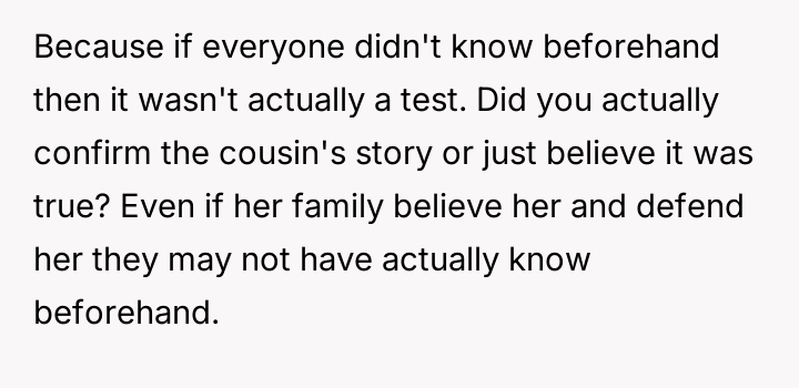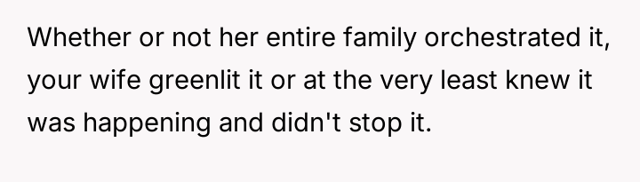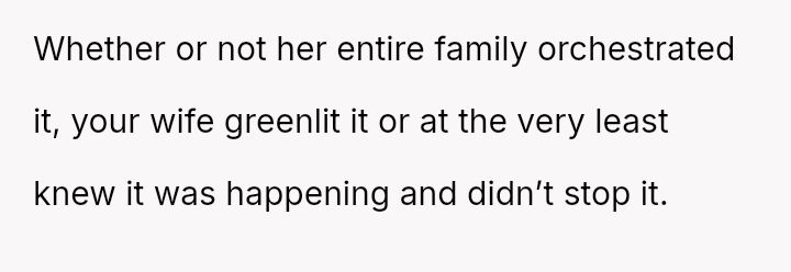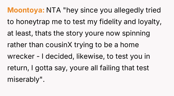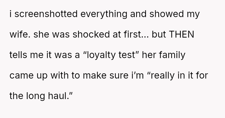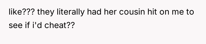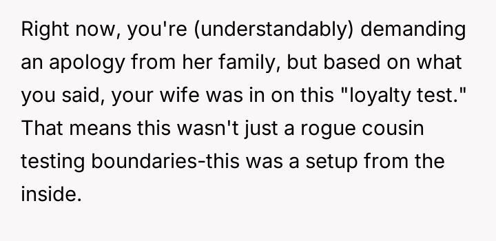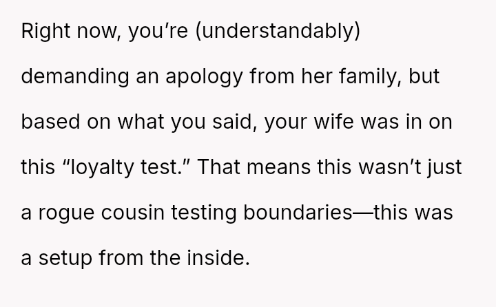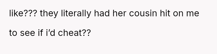 The original poster (OP) experienced a significant boundary v***ation when his wife's family orchestrated a situation where his cousin-in-law attempted to initiate flirtatious contact to test his fidelity.
