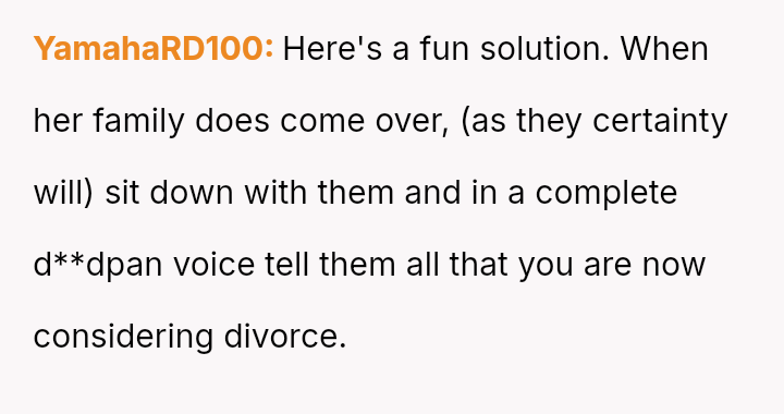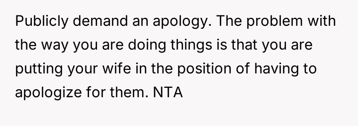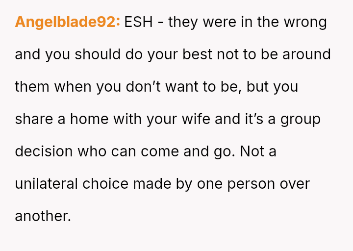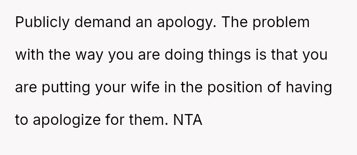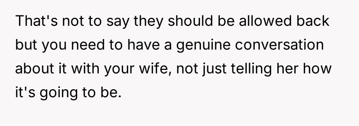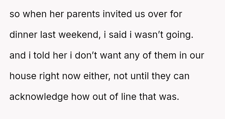 The OP reacted by setting a firm boundary, refusing contact with the family and banning them from his home, which his wife views as an overreaction that is causing a major rift.