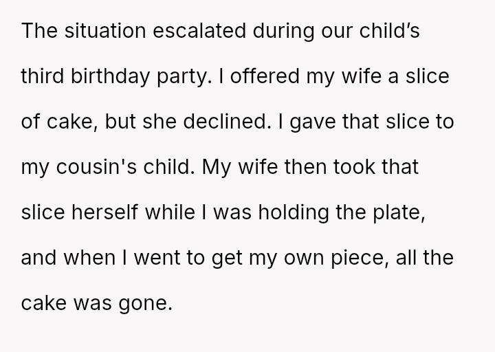 Despite her refusal, she devours the cake meant for him, turning his hunger into anger and his love into resentment. In that moment, the fight over food reveals deeper cracks, leaving him holding the plate and a heart full of unspoken pain.