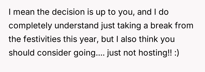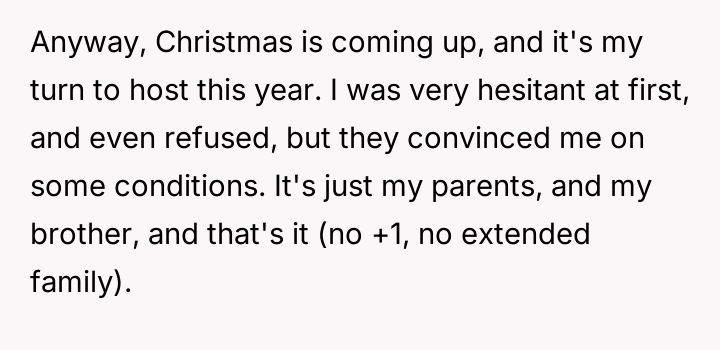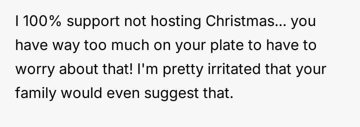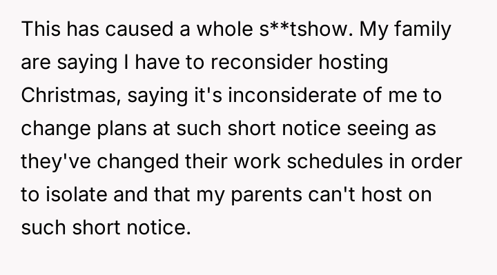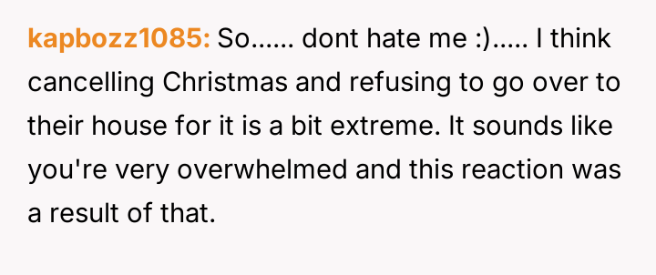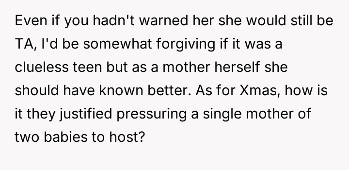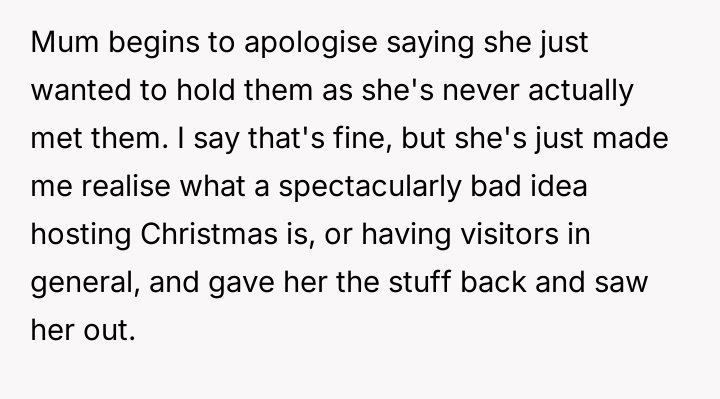 Her decision to rescind the agreement to host Christmas was a direct response to a boundary v***ation by her mother, which confirmed her fears about managing visitors while caring for infants.