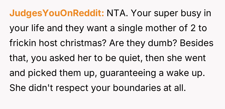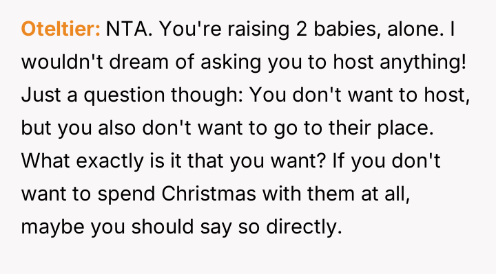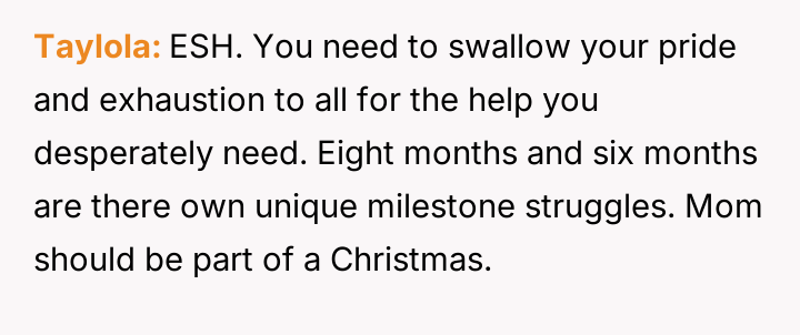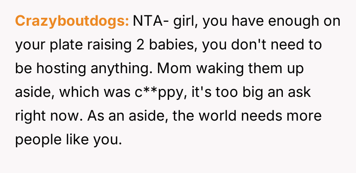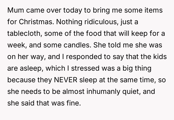 AITA for refusing to host Christmas after my mother woke my sleeping babies?