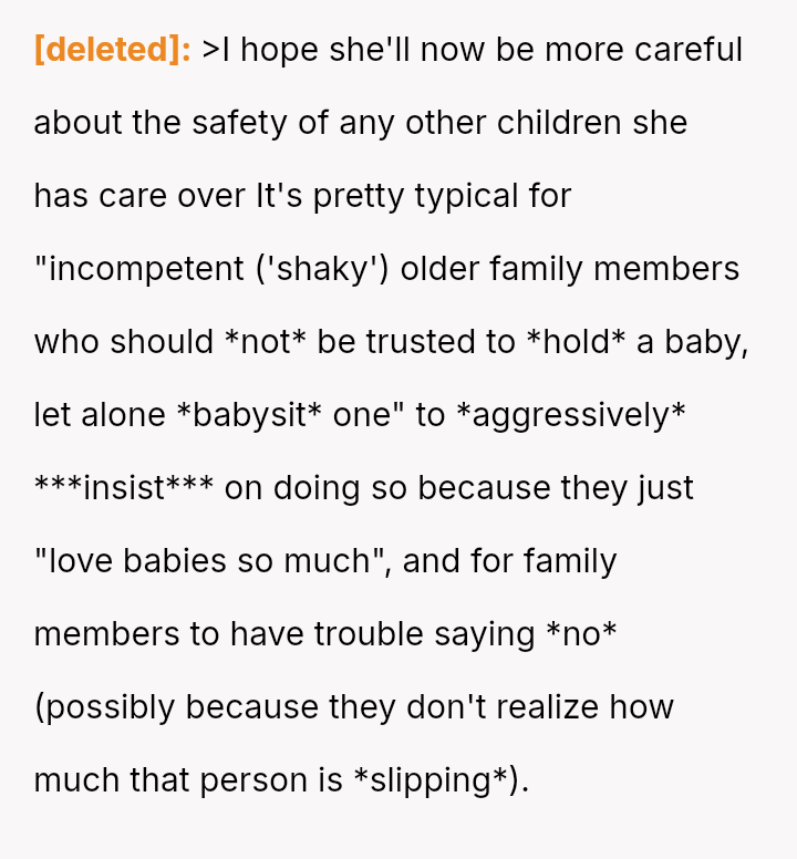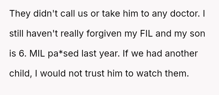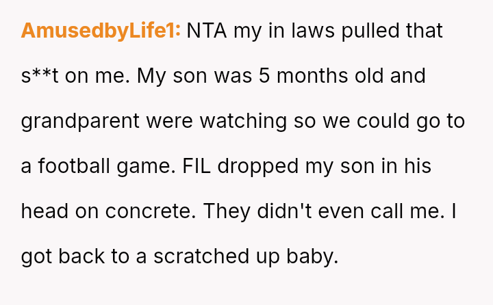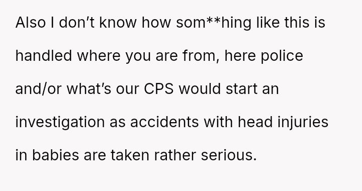 The original poster experienced extreme distress when their infant son suffered a serious head injury while in the care of the paternal grandmother.