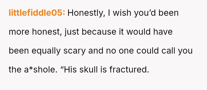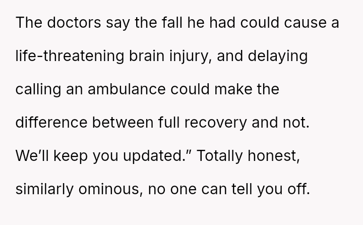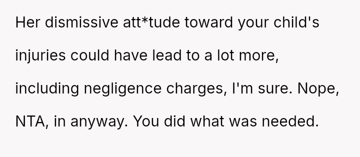 The central conflict lies between the OP's justified concern for their child's immediate medical safety, which required urgent intervention, and the grandmother's dismissive att*tude and subsequent family backlash against the OP for allegedly lying about the severity of the injury.