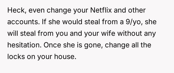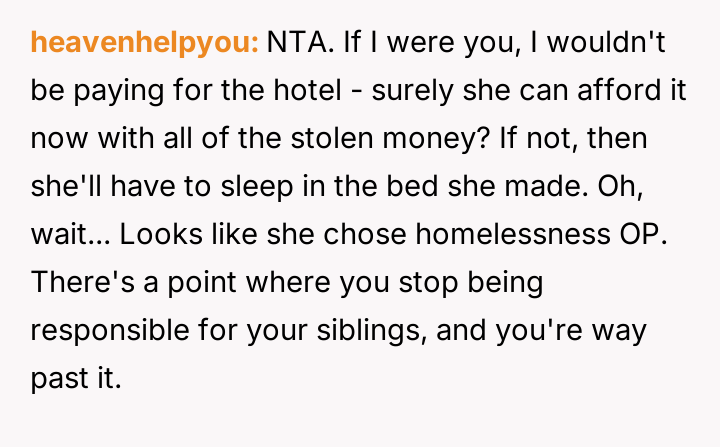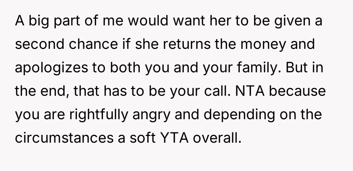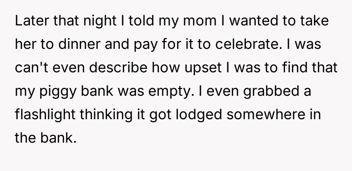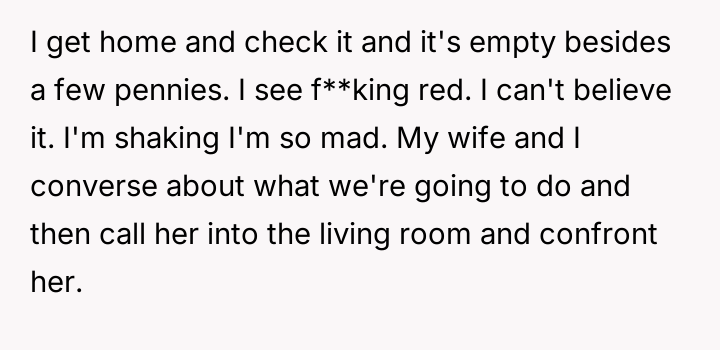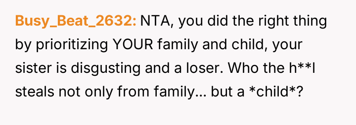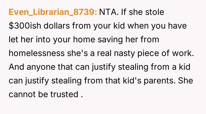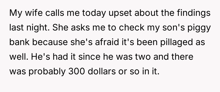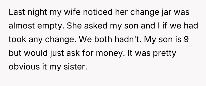 The original poster (OP) experienced a severe breach of trust and security when his sister allegedly stole money from his son's piggy bank while being housed in his home.