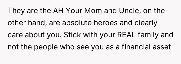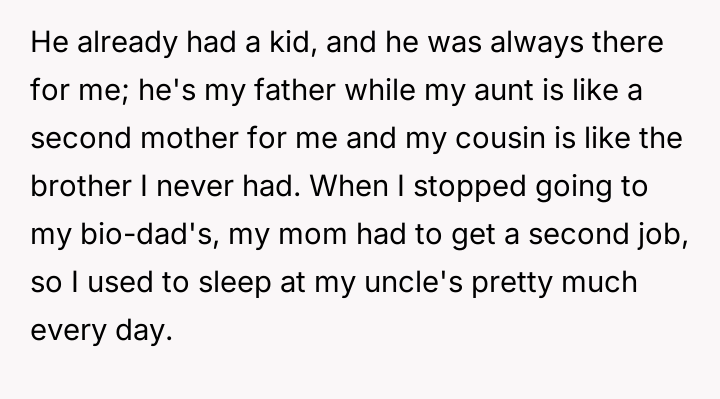 The original poster (OP) clearly views his uncle as his true father figure due to consistent support and presence following his biological father's initial abandonment.