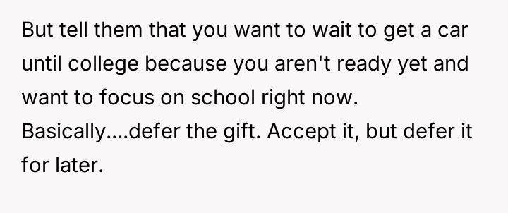 AITA for saying "No thanks" when my parents told me my birthday gift is picking out a car/getting a car?