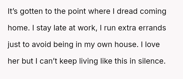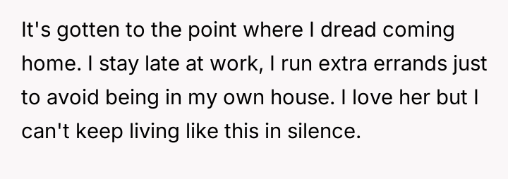 A year of strained silence and unacknowledged frustration has pushed him to the edge, questioning how much more he can endure while holding onto the love that brought them all together.