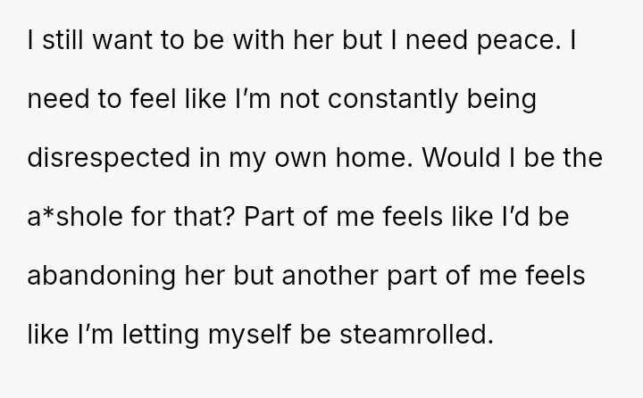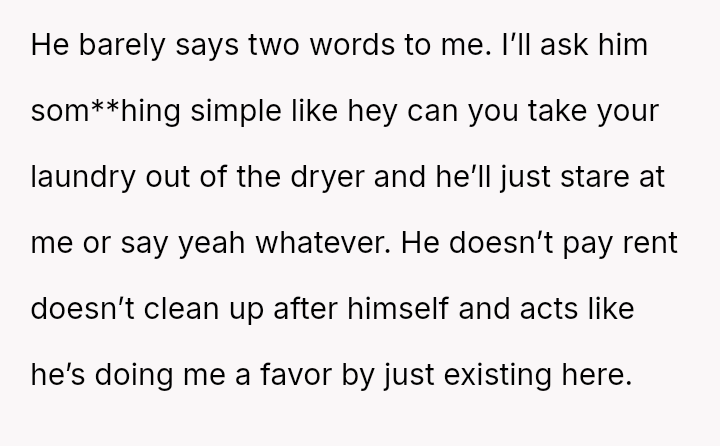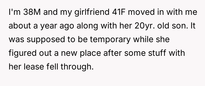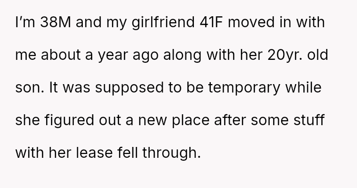 The original poster (OP) is facing significant distress because his girlfriend's 20-year-old son, who has been living in the OP's house for a year under temporary circumstances, shows consistent disrespect and contributes nothing to the household.