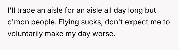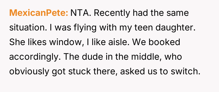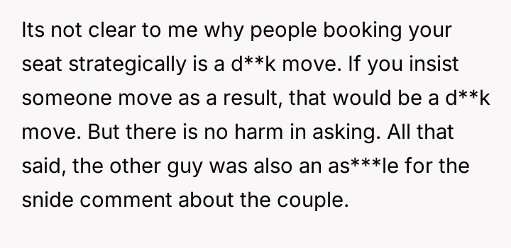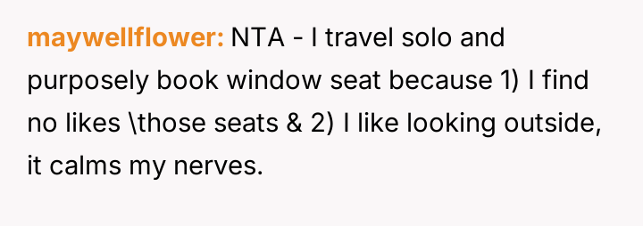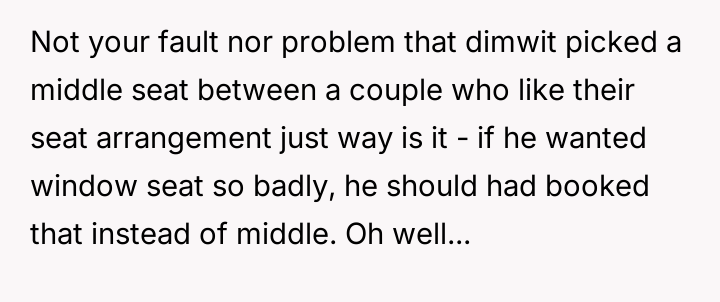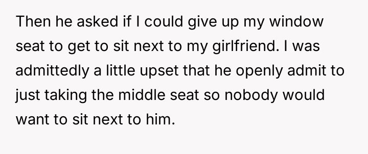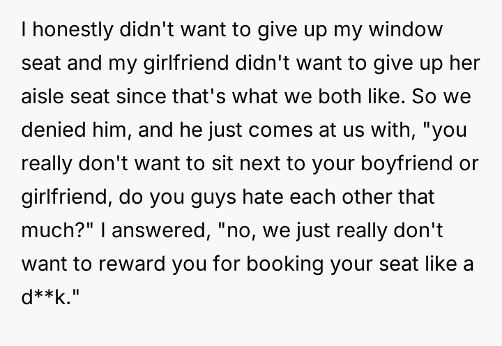 Caught between his principle and his partner’s feelings, the man stood firm, unwilling to surrender his chosen window seat despite the other passenger’s bold admission.
