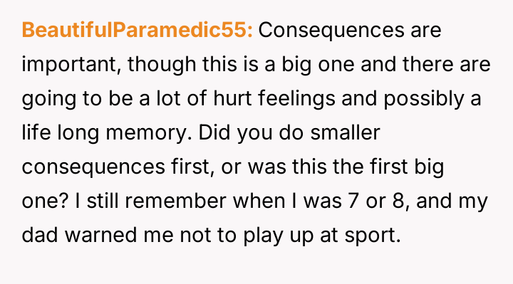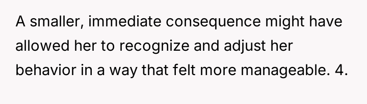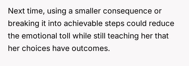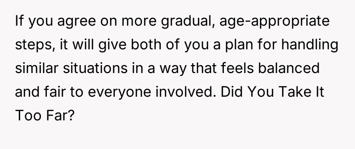 Should parents prioritize immediate behavioral correction through strict consequences, even if it causes significant emotional distress, or is there a point where the severity of the consequence outweighs the lesson being taught, especially when a co-parent disagrees with the approach?