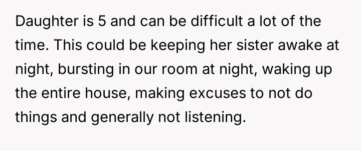 His five-year-old daughter, caught in the throes of childhood defiance, tests every boundary—disrupting nights, resisting routine, and challenging patience.