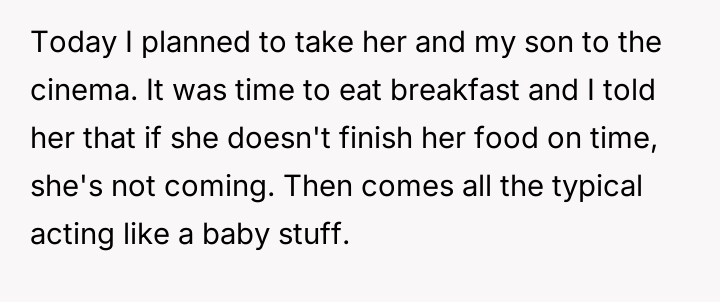 AITA for leaving my 5 year old daughter at home and just taking my son to the cinema?