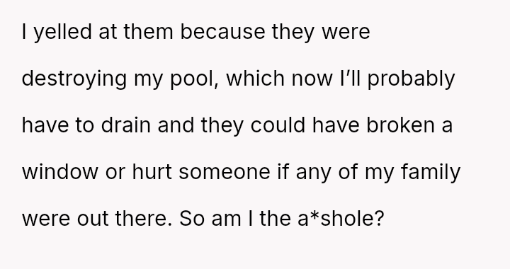 Did the OP cross a line by yelling loudly at the children to stop the trespa*s and property damage, or was this reaction justified given the invasion and potential harm to the pool?
