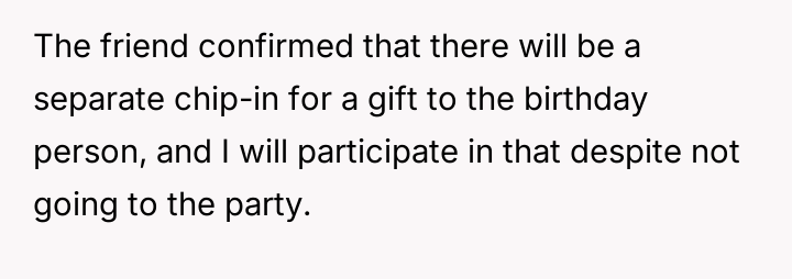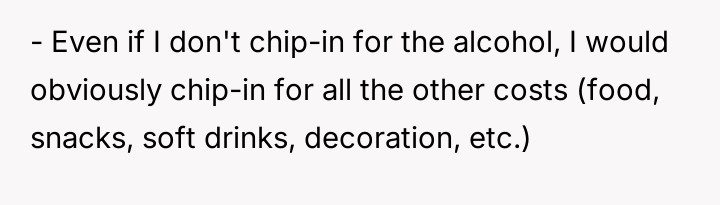 AITA for refusing to chip-in for alcohol at a suprise party?