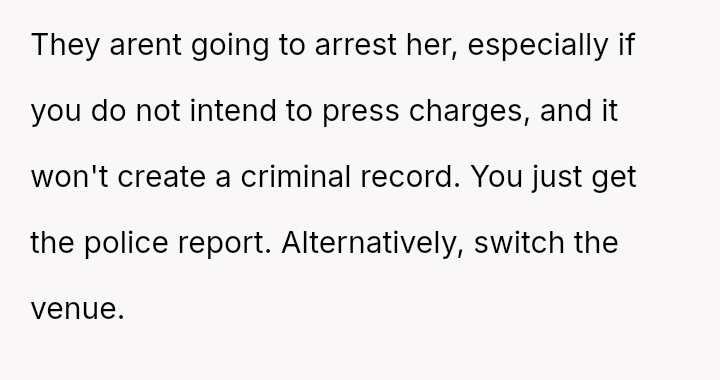 Is the OP justified in refusing the alternative venue and forcing their father to cover the inflated cost unless a police report is filed against the stepsister, or is this an unfair escalation, especially considering the OP's superior financial standing compared to their father?