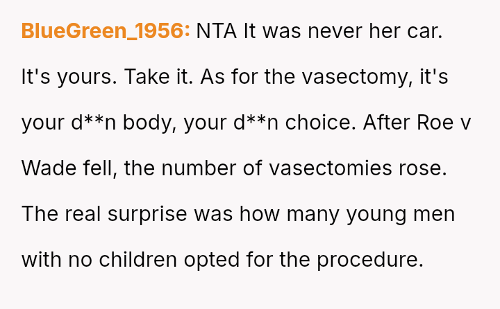 The original poster (OP) is facing conflict because his ex-partner insists on keeping a car he purchased and solely owns, despite their relationship ending.