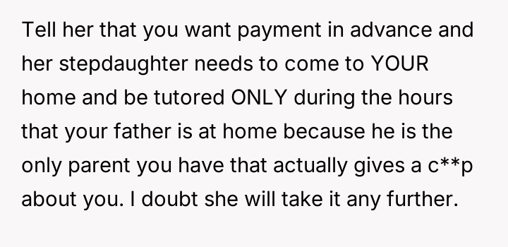 AITA for refusing to give free tutoring to my mom's stepdaughter because she bullied me when my mom married her dad?