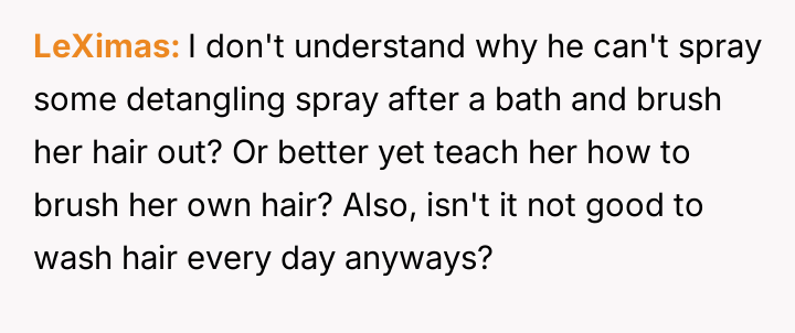 Here, a father’s desire to ease a challenging task clashes with a mother’s cherished ritual, revealing the deep bonds that hair care can symbolize between a mother and her child.