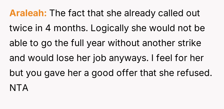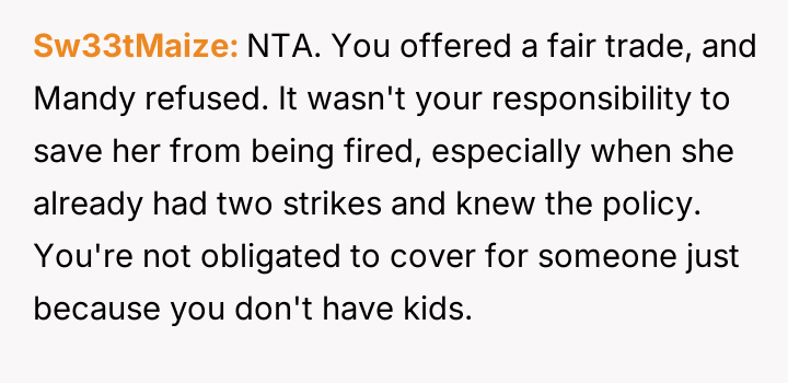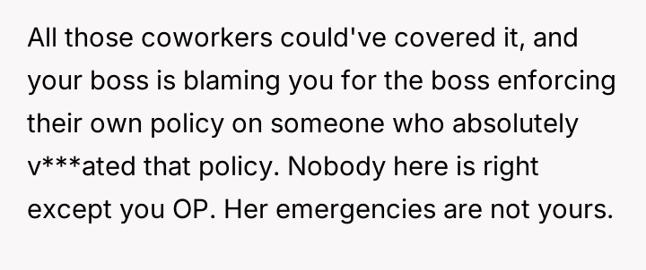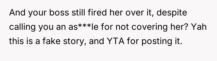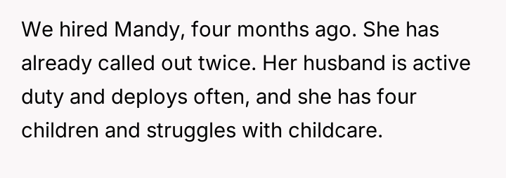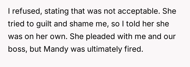AITAH for not covering for my coworker with a sick kid, resulting in her being fired