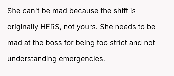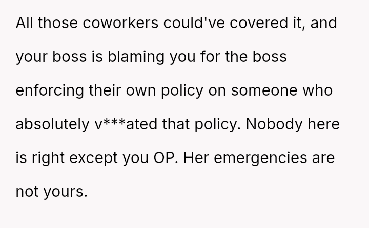 The original poster (OP) finds themselves in a difficult situation where their adherence to fairness, based on past exchanges, clashed directly with a coworker's urgent need driven by family ins**bility.