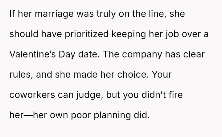 The OP upheld their personal standard of reciprocity, which resulted in the coworker being fired due to the company's strict policy.