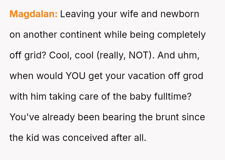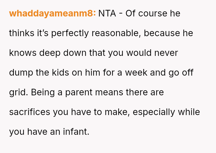 Given the intensity of early parenthood and the total communication blackout proposed, is the husband prioritizing his individual needs over the shared responsibilities and the fundamental safety net required for the primary caregiver of a young infant, or is the OP being overly restrictive regarding his right to necessary decompression time?