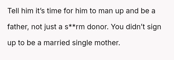 Her pleas for compromise fall on deaf ears, as he dismisses her need for support and connection, suggesting she should find her own escape while tethered by b***stfeeding and sleepless nights.