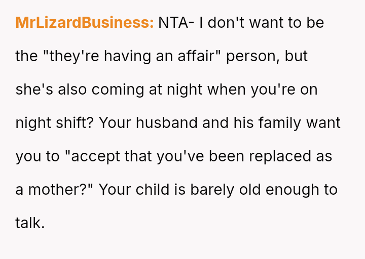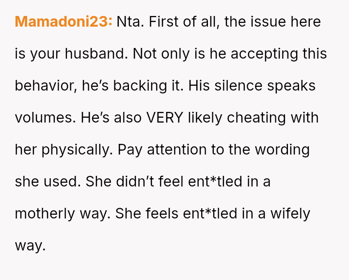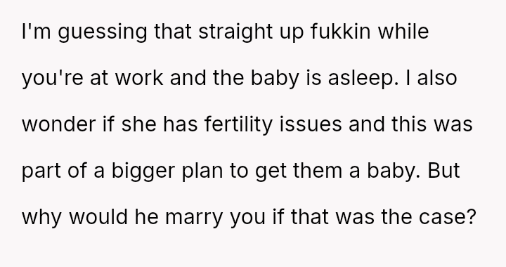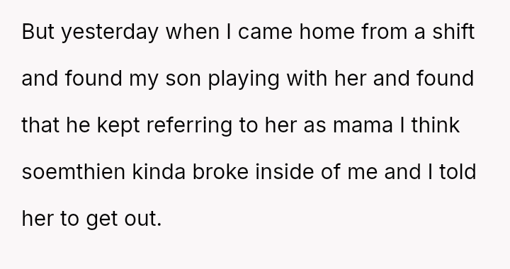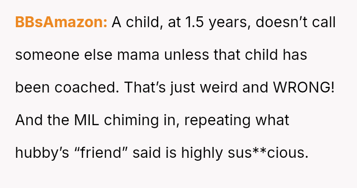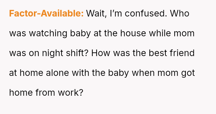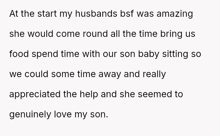 The original poster (OP) experienced a significant breach of trust when they discovered their husband's best friend (BSF) was entering their home and caring for their son, leading to the child recognizing the BSF as "mama." This discovery forced the OP into a confrontation, ending the BSF's involvement abruptly.