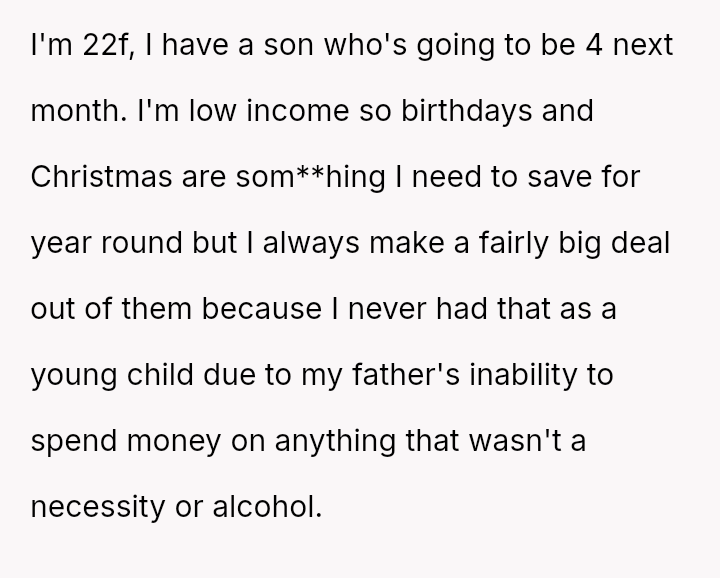 Despite her low income and the constant struggle to save every penny, she holds onto hope and love, determined to create joyful memories for her little boy’s birthdays and Christmases.