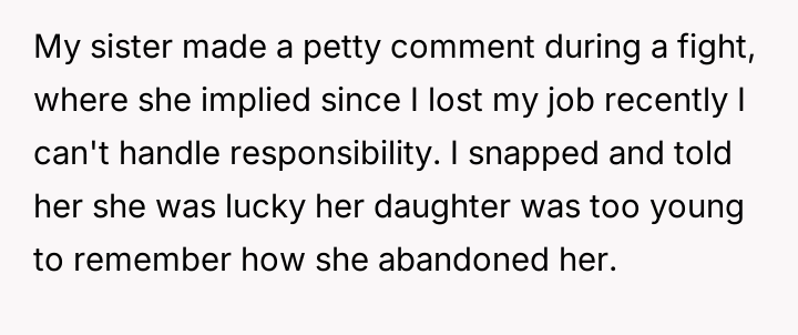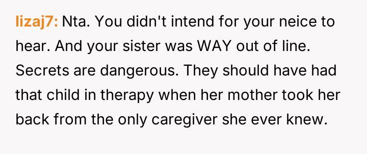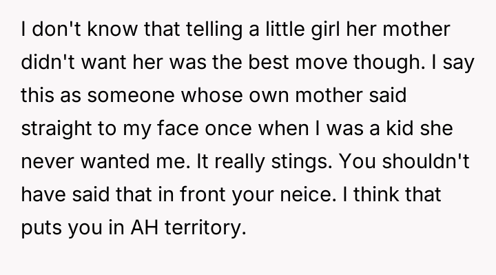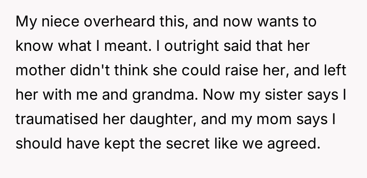 AITA For telling my Niece her mother tried to give her away as a baby?