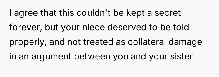 The original poster (OP) is facing significant conflict after revealing a long-held family secret regarding the upbringing of his niece.
