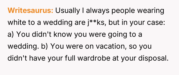 AITA for wearing all white to my best friend’s wedding? And refusing to apologize