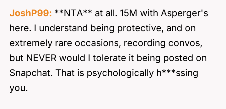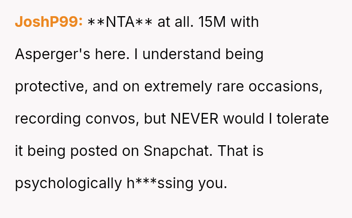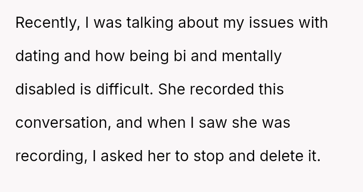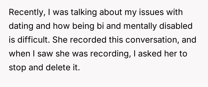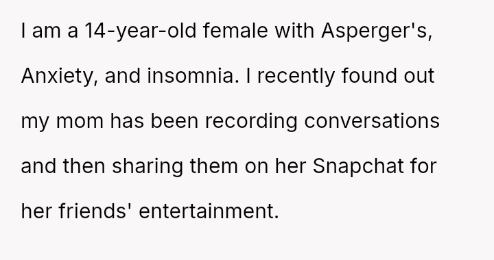 The original poster is experiencing a significant breach of trust due to her mother recording private conversations, adding humiliating captions, and sharing them publicly.