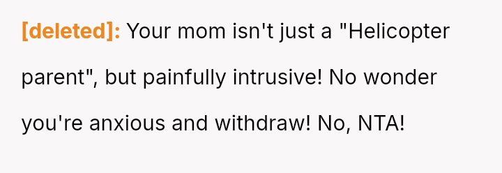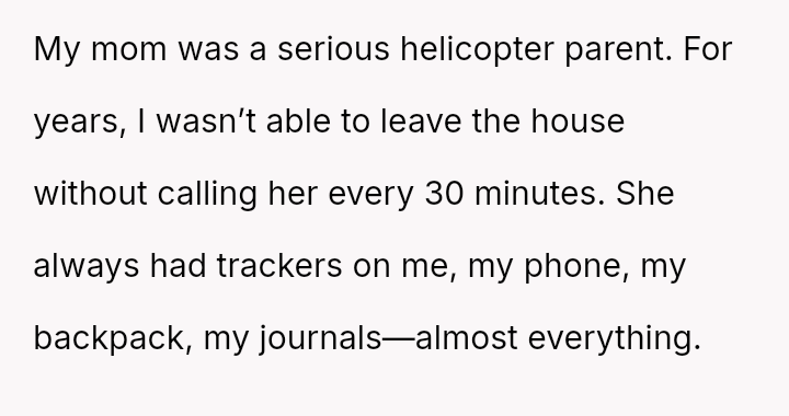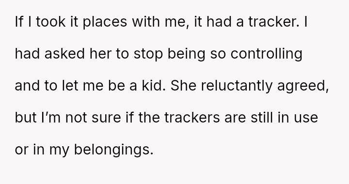 Her mother’s control has been suffocating, a constant shadow tracking her every move, stripping away any chance of freedom or privacy.