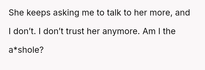 Her emotional response is one of justified withdrawal and a loss of confidence in her mother's respect for her privacy and dignity, especially given her pre-existing mental health conditions.
