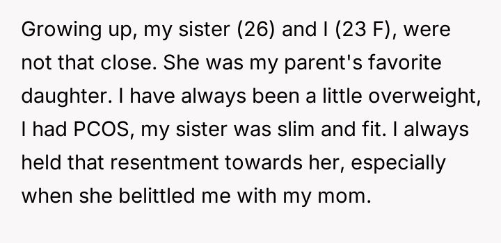 From childhood, the weight of comparison and silent resentment hung heavy between two sisters, one favored and fit, the other struggling with her own battles and scars.
