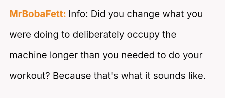 In response to the demanding and ent*tled behavior, the OP chose a punitive course of action, intentionally monopolizing the requested machine out of spite.