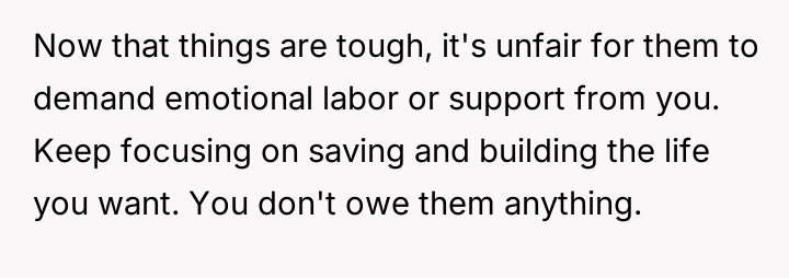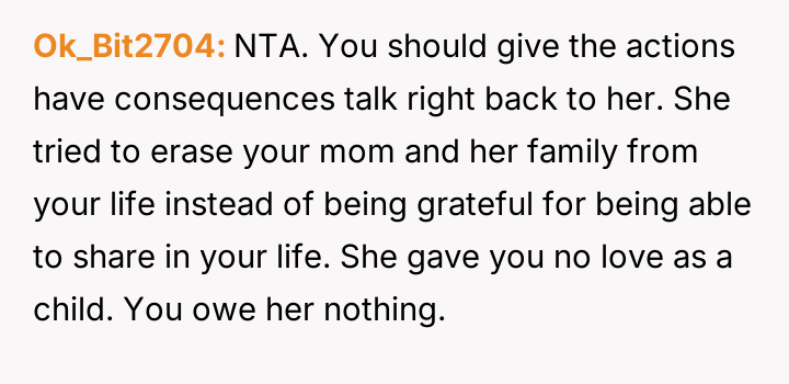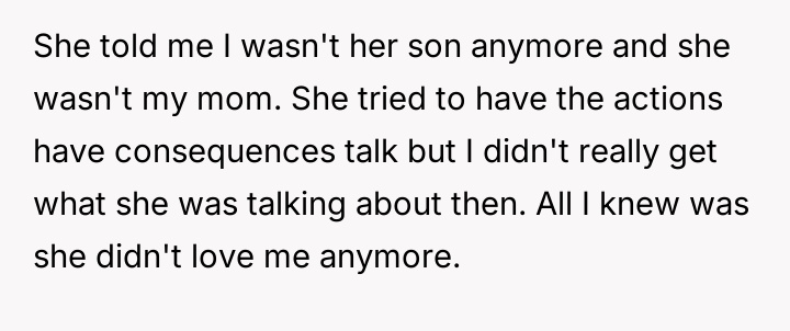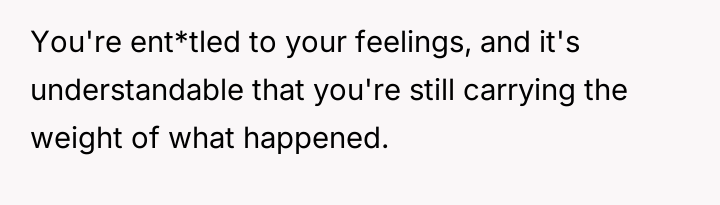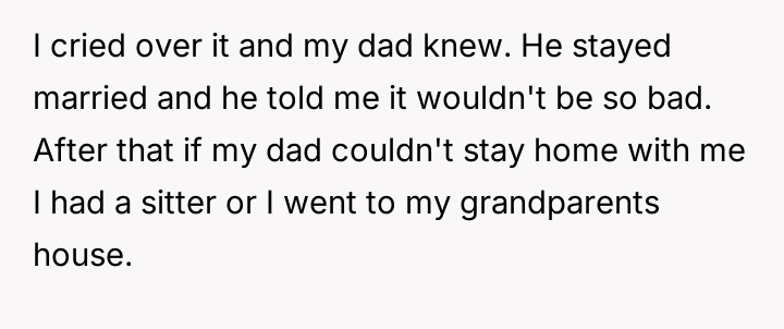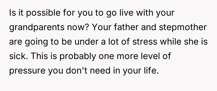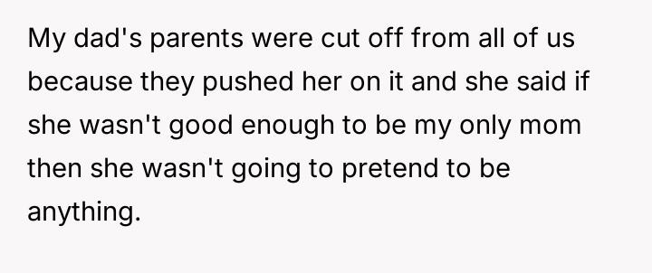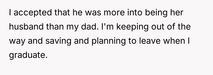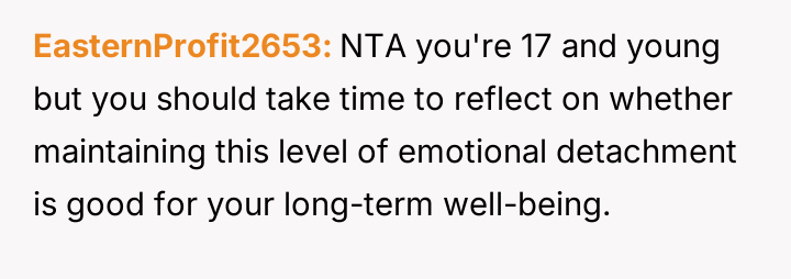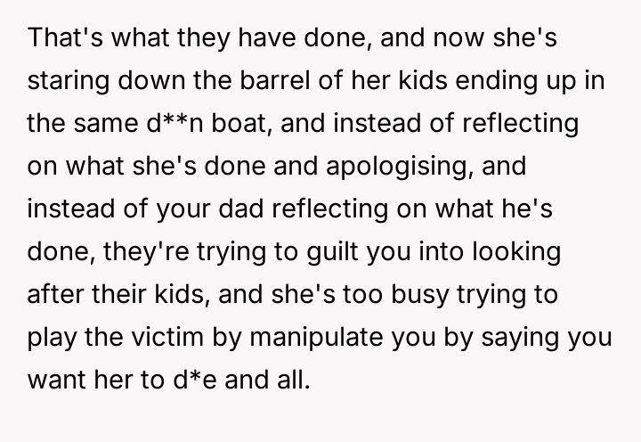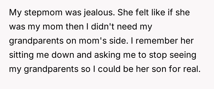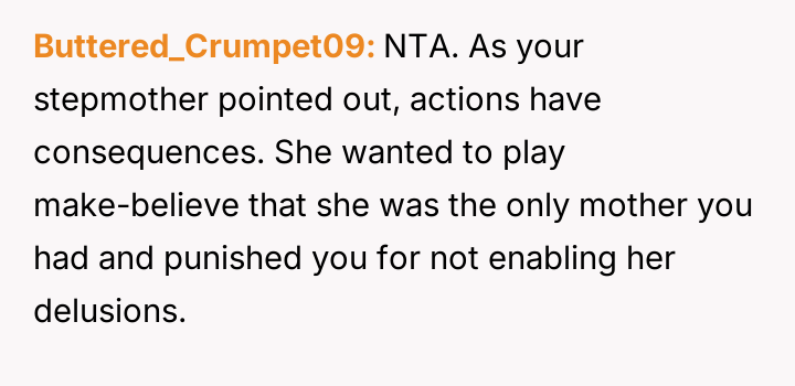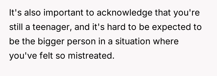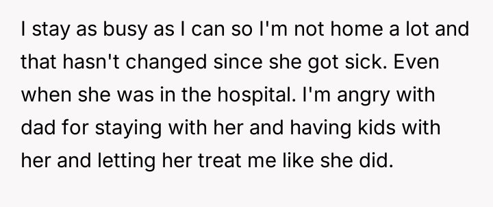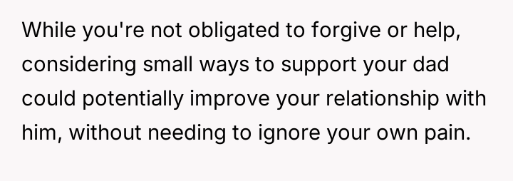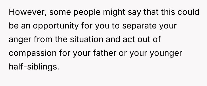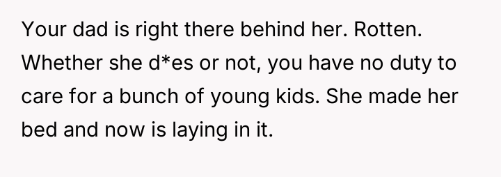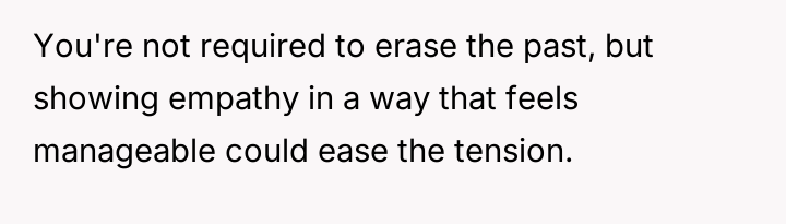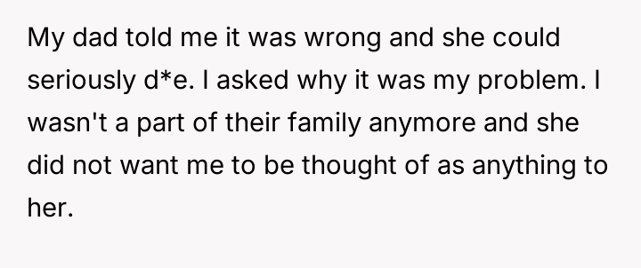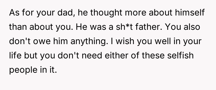The original poster (OP) maintains a deeply conflicted and hurt emotional position rooted in years of rejection by his stepmother, who explicitly excluded him from the family unit.