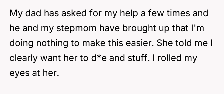 AITA for doing nothing to help my dad and stepmom while she's got cancer?