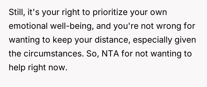 Is assisting in this grave situation an act of basic human decency, or is it an endors**ent of a relationship that caused significant past emotional harm?