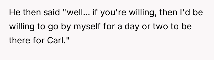 Her husband's passive communication style, suggesting he would go alone while framing it as a concession, has heightened her feelings of being unvalued in this difficult transitional period.